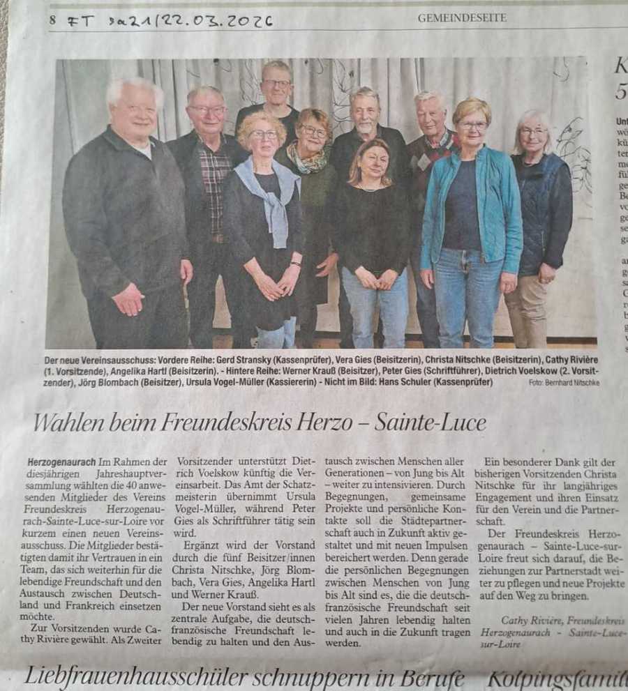 FT 21./22.03.2026: Wahlen beim Freundeskreis Herzo - Sainte Luce